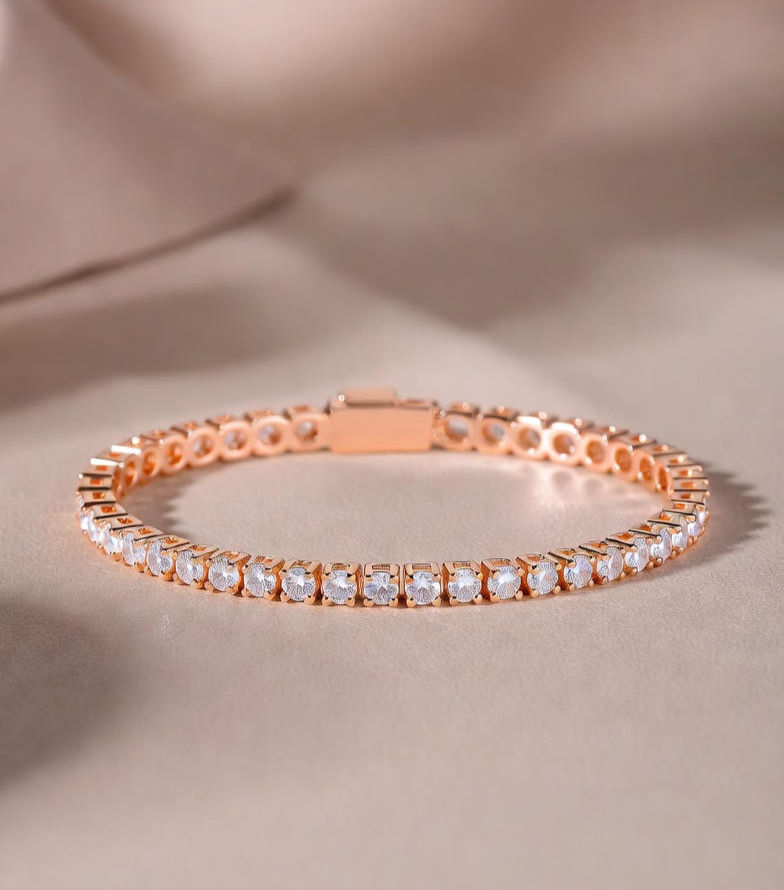 Introducing our latest bracelet: the tennis style ruby bracelet in rose gold. Crafted with exquisite attention to detail, this piece features 3 sparkling ruby stones set in a matte finish. Perfect for special occasions. Adjustable for comfort, hypoallergenic, and comes with a complimentary gift box.